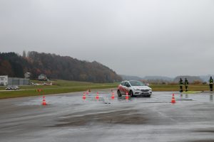 Aktionstag Verkehrssicherheit 2021 in Vilshofen Vilshofen. 60 km/h sind eigentlich nicht schnell. Auf rutschiger, schnee- und eisglatter Fahrbahn ist es trotzdem nicht einfach, einem Hindernis auszuweichen. Das stellten 27 junge
